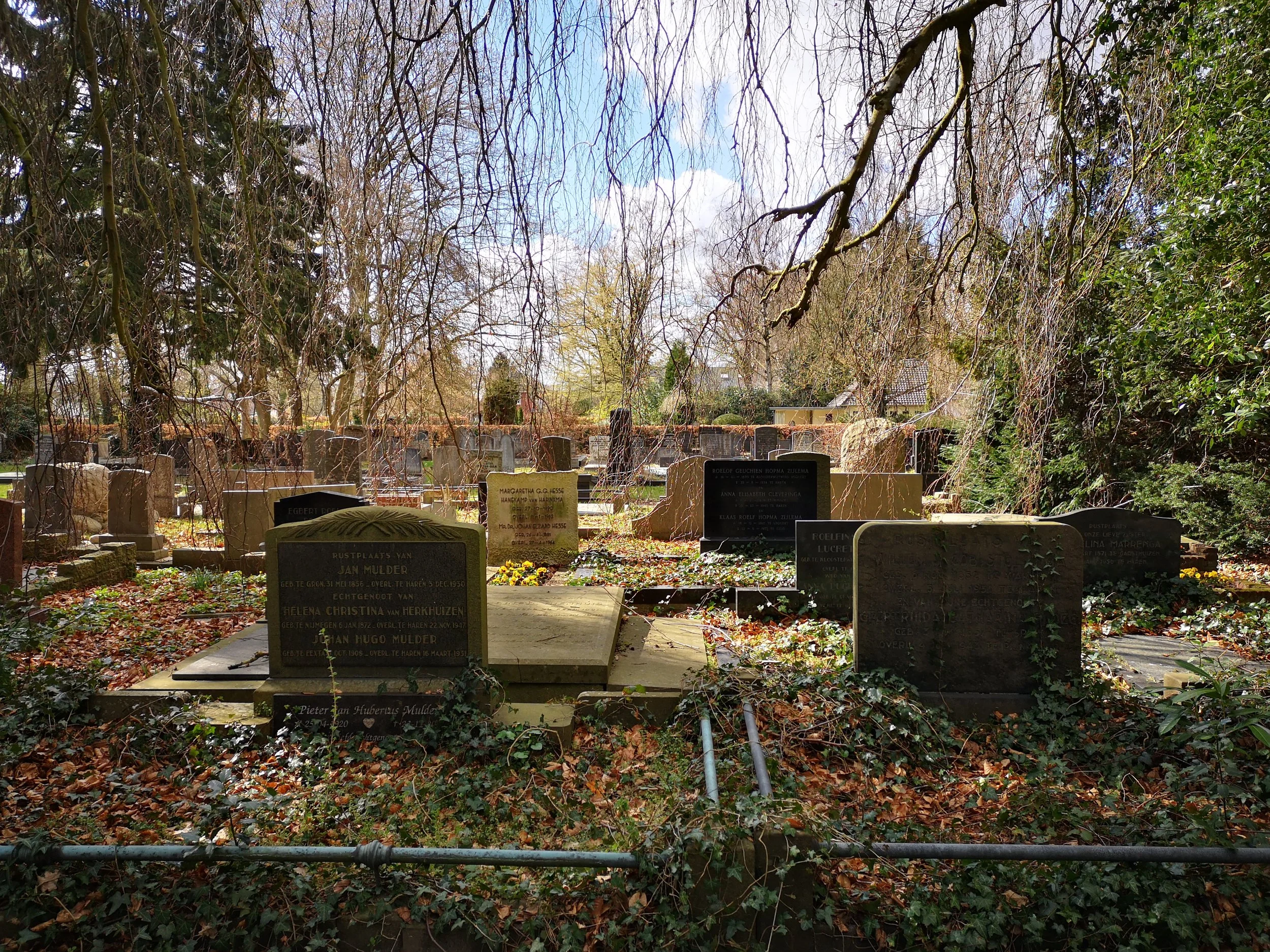 Het was een mooie dag, zaterdag 29 maart. Ik werkte aan mijn website en bedacht me dat ik nog geen foto’s had van onze plaatselijke begraafplaatsen. Sterker nog: ik was er nog nooit geweest. Een prima moment om op de fiets te stappen naar de oude en de nieuwe begraafplaats in Haren. Het was op beide plekken rustig, slechts een enkel iemand verzorgde een graf of liep rond. Tussen de graven ontlook de lente. Wat een mooi contrast tussen begin en einde.
